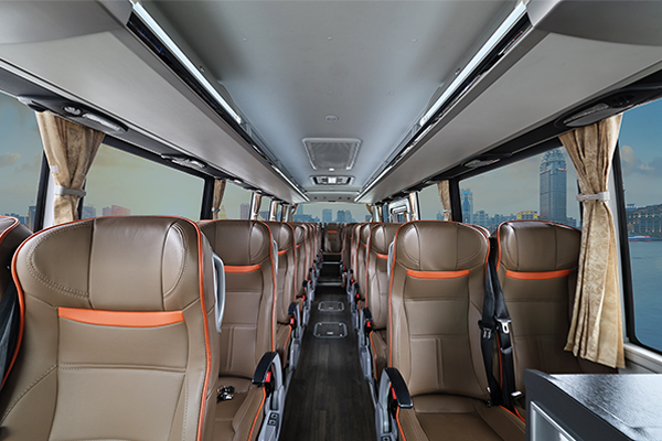 The 6829H coach draws on the design elements of the H-series, featuring a simple, modern, and stylish design that combines modern aesthetics for an outstanding visual appeal. The interior layout has been optimized and upgraded, incorporating ergonomically designed seats that improve operational efficiency while enhancing passenger comfort. Adopting a user-centric design language, the coach bus emphasizes technology to deliver a pleasant driving and riding experience, making operation easier and enhancing driving safety.